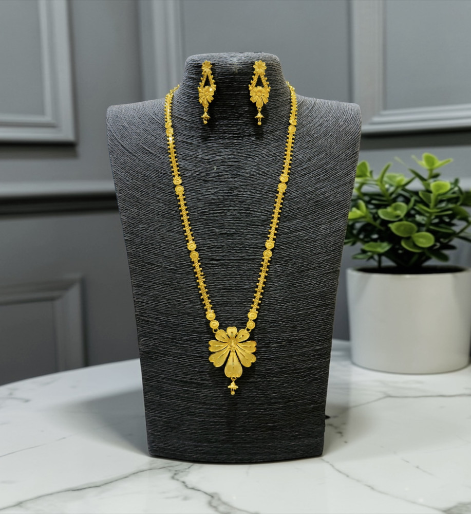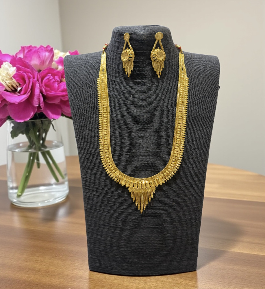 Elevate your traditional look with this beautifully crafted necklace set, finished with 24-carat gold plating for a rich, authentic gold appearance. Designed to be long-lasting and premium in quality, it offers the elegance of real gold at an affordable price. Perfectly complements Indian traditional attire, making it an ideal choice for weddings, festive occasions, and celebrations.