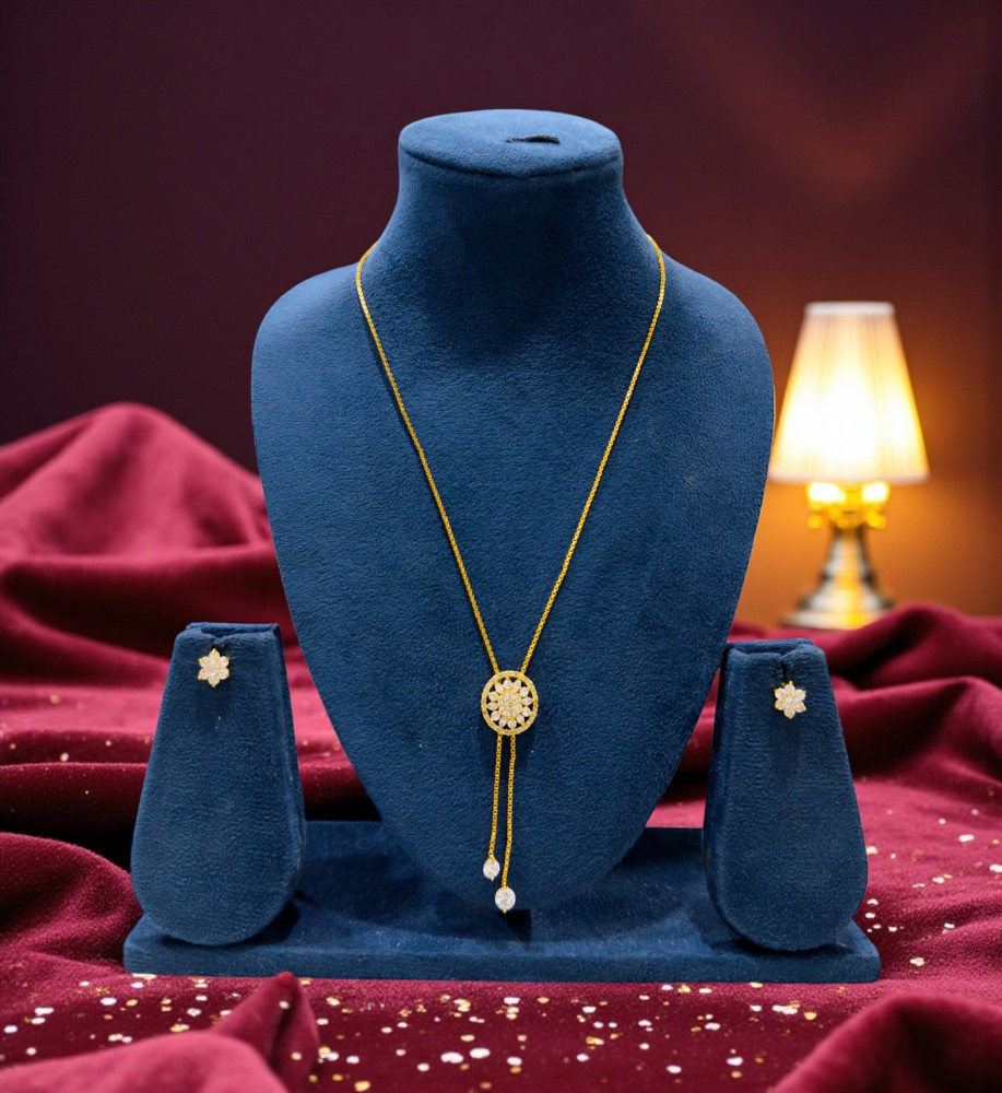 This gold-plated tie set blends contemporary style with timeless charm, making it a standout jewellery piece for women who love subtle sophistication. It offers a delicate shine and polished finish ideal for special occasions or stylish everyday wear.