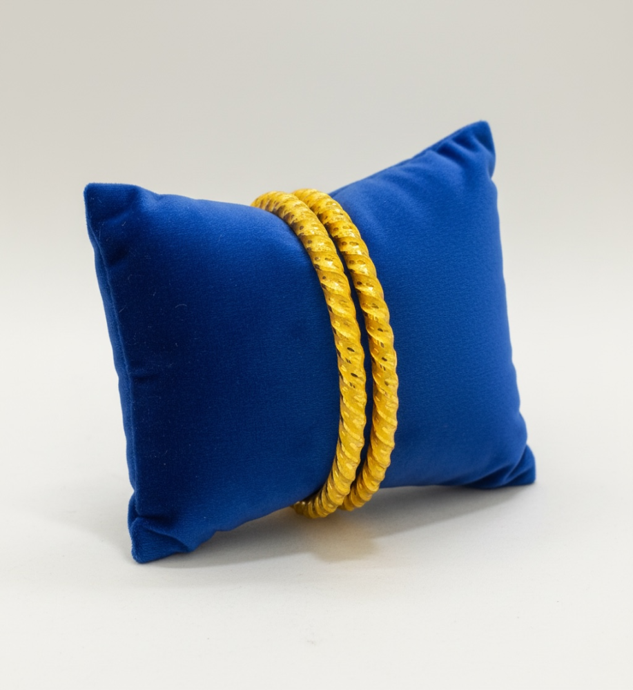 Product description Crafted with a 24-carat gold plated finish, these bangles offer a perfect balance of tradition and modern elegance. Ideal for everyday wear as well as festive occasions, they enhance any outfit with a timeless appeal. Product details Metal: copper Plating: 24 carat gold plated Warranty: Six months warranty is provided. Its longevity depends on usage and care