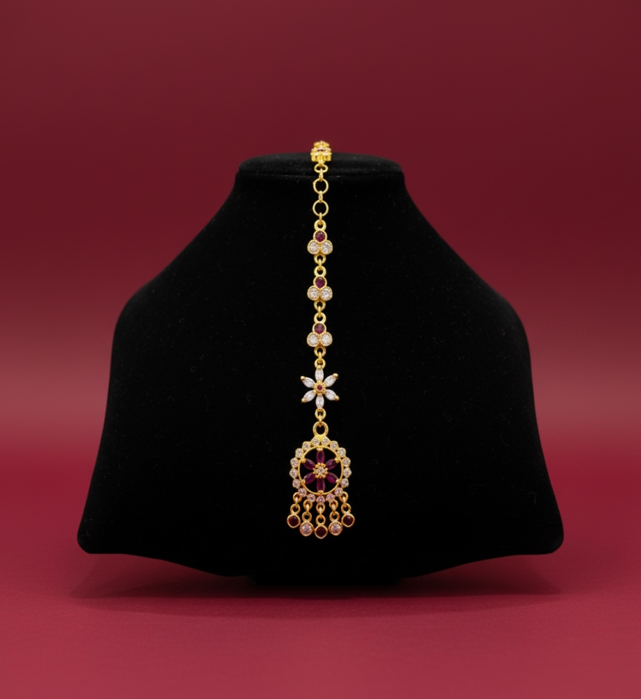 A beautifully crafted 24-carat gold plated maangtika designed with fine craftsmanship. Perfect for weddings, festivals, and traditional celebrations, it adds timeless elegance to any ethnic attire.