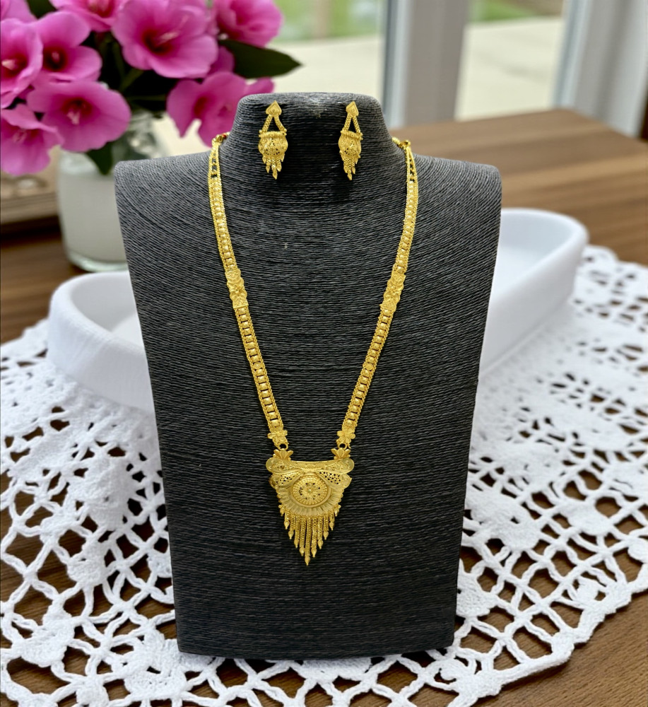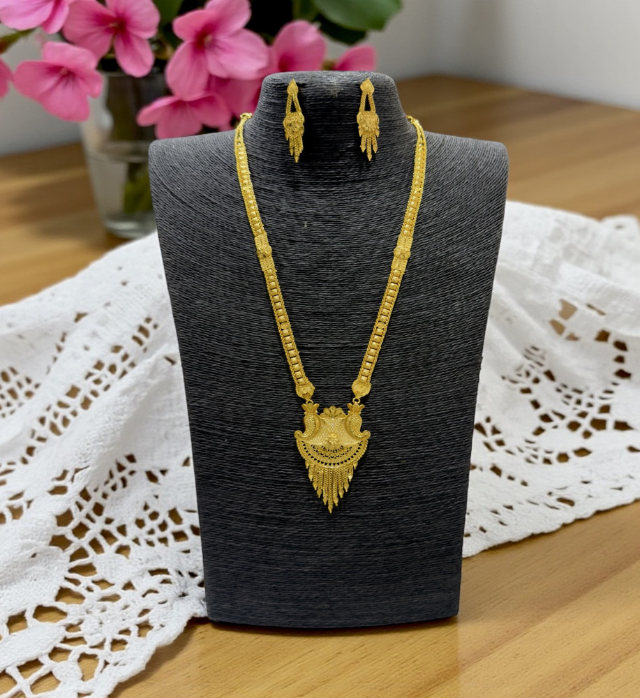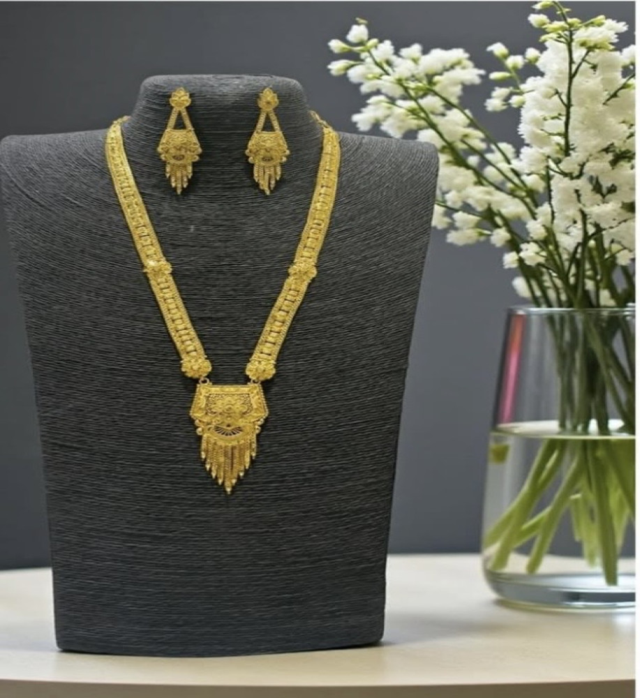 Elevate your traditional look with this beautifully crafted necklace set, finished with 24-carat gold plating for a rich, authentic gold appearance. Designed to be long-lasting and premium in quality, it offers the elegance of real gold at an affordable price. Perfectly complements Indian traditional attire, making it an ideal choice for weddings, festive occasions, and celebrations.